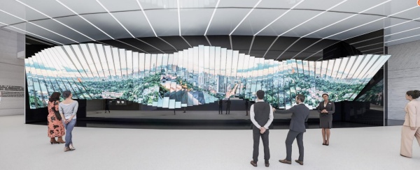 我們在整個展廳頂上里特意設(shè)置了一條LED長卷,將湘江及其沿江的風(fēng)光投影其上,營造一個湘水環(huán)繞的整體空間氛圍,即點出了展館的地域特色,又很好的強調(diào)了“湘水連衡,濟經(jīng)世擎天之大才”的寓意!